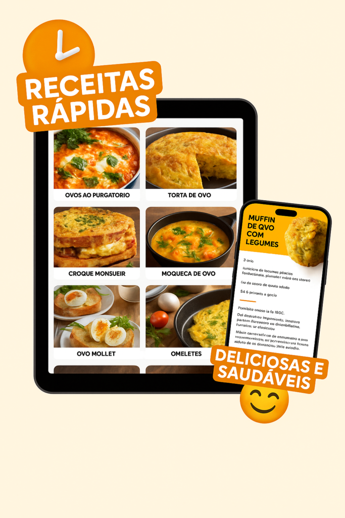Aprenda mais de 365 receitas com ovos e tenha variedade, praticidade e sabor todos os dias, sem complicação.